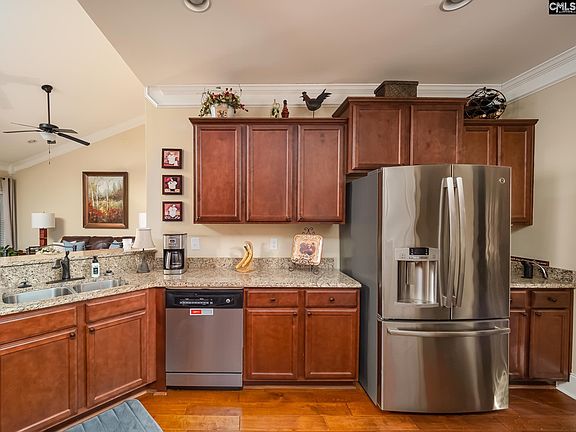 Private Marina & Dry Storage space included with the 4 BR 2 1/2 BA home located in sought after Night Harbor Subdivision. Custom built brick home with engineered hardwoods on main level. Beautiful archways greet you when you enter the foyer area. Other features include formal dining room, spacious kitchen with granite countertops, large pantry and gas range. Heavy crown molding in family room with gas fireplace. Extremely large master suite with large master closet, garden tub and separate shower. Enjoy your morning coffee on your private screen porch and cool afternoons beside your very own fire put and swing. Upstairs is 3 large sized secondary bedrooms with large closets and full bath. One bedroom or man cave has a built-in bar or coffee nook. This home also has an oversized enclosed garage and parking pad. The larger lot backs up to a private alley with woods for real lot privacy. Oversized gutters and 3 zoned HVAC system as well as irrigation system are additional features you will enjoy. Seller has a built-in security safe in the coat closet that does not convey but can be purchased.