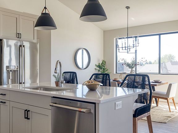 Our latest Mountain Modern plan! Large windows, vaulted ceilings throughout. The kitchen provides plenty of cabinets, a large island and a walk-in-pantry. A large great room with fireplace and vaulted ceiling. The master suite includes dual vanity, 2 walk-in closets and oversized shower. Second bedroom and full hall bath round out the main level. The basement includes an enormous family room, 3 bedrooms, full bath and incredible storage.