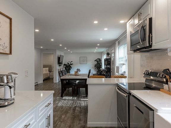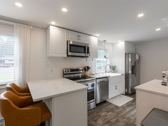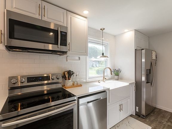 Lovely neighborhood setting, situated on a cul-de-sac w/ almost 1/2 acre! Minutes to the grocery store & shopping, this adorable ranch has been updated top to bottom w/ all the finishes you've been looking for. You'll be pleasantly surprised at how spacious the open concept layout feels through the main living space. Kitchen equipped w/ full pantry, stainless appliances, farmhouse sink, and quartz countertops. Style & functionality continue in the dining & living room w/ custom fitted blinds & large picture window that brings in great natural light. The full bath features heated tile floors. 3 sizeable bedrooms including a primary w/ sliders out to a private deck. Additional space in the partially finished basement w/ 2 rooms that could serve wonderfully as the home gym, office or play space! Amazing partially fenced yard, vinyl siding, replacement windows, & new roof 2017! Smart home features including Nest thermostat & Ring cameras. Option to be sold furnished!