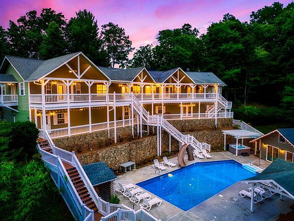 This turnkey, income-producing, dream rental property with a full calendar and repeat guests is ready for the next savvy investor. With an impressive annual revenue, this cabin offers something for everyone, from the large theater room, to the heated pool with massive sunbathing deck (24 chairs!!), long range mountain views, outdoor playset, newly built firepit, all paved access, gameroom with trampoline...your friends or guests will never be bored! And best of all, the rental history...Boasting a gross income of $345,000 in 2023 and on track to match or exceed that figure in 2024, this property represents a solid investment opportunity with additional revenue and booking data available. Due to full calendar, showings only available 6/17 and 6/30. Schedule your appointment to view Wonder Lodge today!
