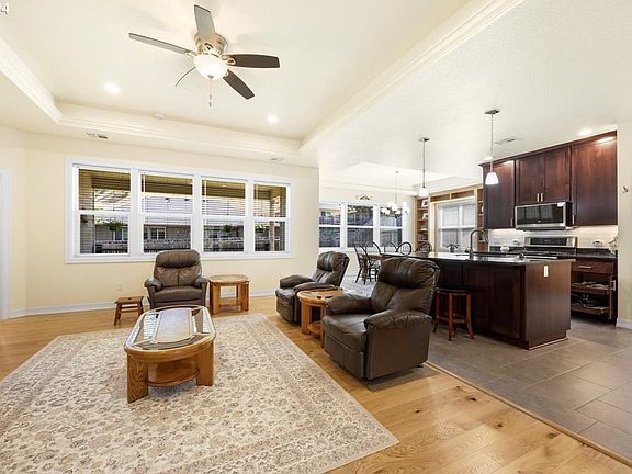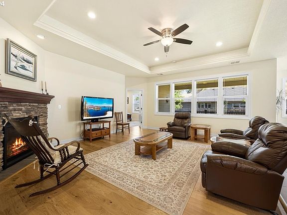 Location, location! Just minutes from Roseburg! This well-appointed single level beautiful custom home located on Oak Valley Loop lies in close proximity to shopping, medical and city services. The property offers low maintenance professional landscaping, fenced backyard and a covered back deck to relax and unwind. Features include hardwood flooring, custom window blinds and high end finishes. You'll enjoy the open concept floorplan, coffered ceilings and gas fireplace. The custom granite kitchen is the heart of the home ready for any chef offering Stainless Steel gas appliances, island with prep sink, custom cabinetry, pull-outs and spacious pantry. The formal dining area offers custom tile floors, built-in storage/display wall, coffered ceiling and access to the covered deck. Retreat to the primary suite with hardwood floors, high ceilings, custom tiled bath, seated walk-in shower, dual sink vanity and large walk in closet. With pride of ownership and attention to detail throughout, this home and property are perfectly suited for your enjoyment and entertaining in style. Call today to arrange your private viewing of this beautiful Winchester area home.