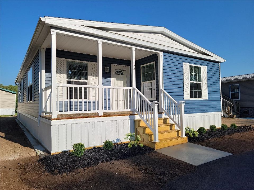 AMAZING BRAND NEW HOME in PREMIER COMMUNITY. Opportunity for Homeownership with SO MANY UPGRADES * Lender Financing Programs may be available for Buyers with credit score 630+ with as little as 5% down payment = own for similar cost of renting or less if the STAR rebate is considered * Lot rent of $465 INCLUDES REAL ESTATE TAXES on the home *Great Open Floorplan with 6’ Open Porch and UPGRADES* 2 Bedroom/2 Bathroom * Stainless Steel Appliance Package-includes Gas stove, Refrigerator, Dishwasher, Microwave over the Stove * Upgraded Kitchen and Bathroom Cabinets * Large Kitchen Island * Numerous Upgrades some of which include Ceramic Tile Fiberglass Master Shower, Upgraded Carpeting in Living Room and Bedrooms, Architectural Shingle Roof, Upgraded Insulation, Farmer’s Kitchen Sink, OSB under Vinyl Siding, Upgraded Interior Molding, Cable Jacks in Living Room and Bedrooms, 40 Gal Hot Water Tank* LED Lighting and Living Room Ceiling Fan, and on and on. 25lb Dog limit and 2 pet limit in Park. Will Have Brand New Asphalt Driveway and Hydroseeded Lawn. Sale Price includes NYS Sales Tax on Home. Home can NOT be removed from Shadybrook Estates. 630 Minimum Credit Score without exception.