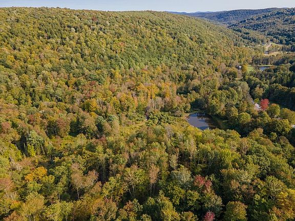Hunters and outdoor enthusiasts Paradise!! Cabin in the woods located on scenic country road surrounded by natures breathtaking beauty. 50 mostly wooded acres, large stocked pond, year round stream, hiking and ATV trails. Home features 2 bedrooms plus a spacious loft, 3-season room, and more. Two-story two-car garage plus additional outbuildings. Perfect getaway property, a must see!