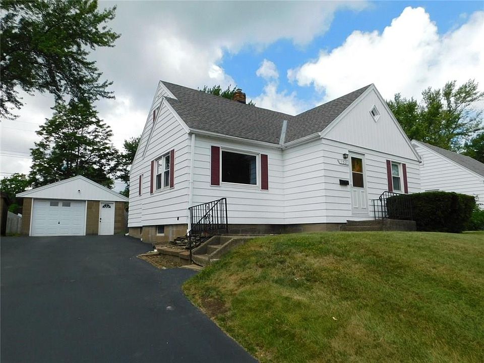 Nicely updated Cape in NE Erie. Walk to the public beach at foot of Chautauqua Blvd. Large eat-in kitchen, newer windows, and roof. New carpet in living room. Hardwood floors in the bedrooms. Large full basement with high ceilings. Forced air heat with central air. Walk-up attic could be finished for 3rd bedroom. Large yard with 1.5 car garage. 1 Mile from Wabtec, 4 miles from downtown Erie.