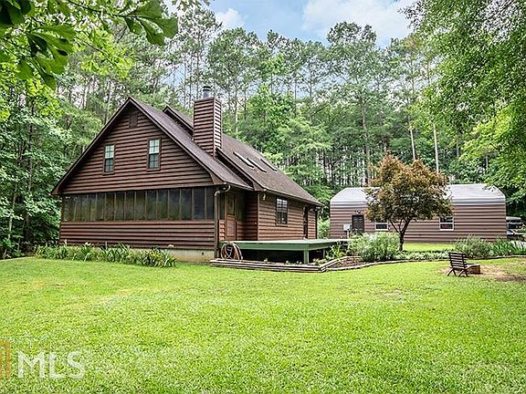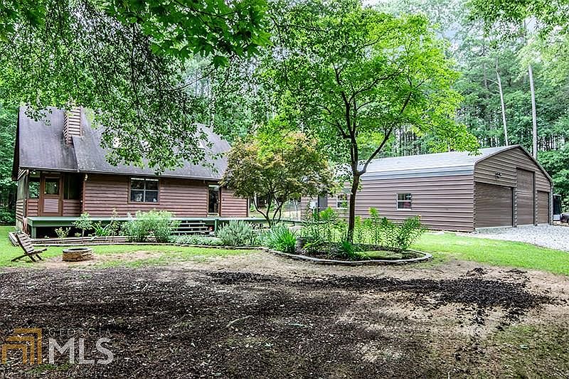 Rustic country retreat or Mini Farm on 3 private wooded acres. Enjoy the peaceful serene setting from your wood deck or screened in porch. One and half levels of living space with a beautiful kitchen that opens up to living room featuring a floor to ceiling stacked stone fireplace with wood burning stove, 2 story ceiling and skylights. Spacious master bedroom and bathroom with separate shower and garden tub on main floor. Loft overlooking living room with private 2nd bedroom and bathroom upstairs. Very well maintained home. Detached 45 X 40 metal building with concrete pad offers variety of use with 3 roll up doors offering multiple heights. Perfect use for workshop, recreational,.storage, vehicle or RV/Camper parking too. PROPERTY QUALIFIES FOR 100% USDA!