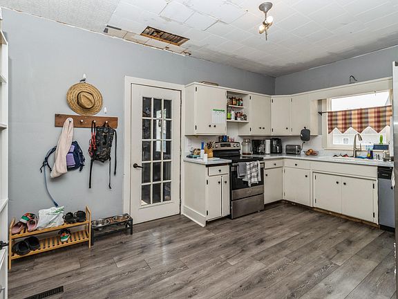 Stepping inside, you'll discover a spacious and inviting living area featuring updated flooring that extends throughout the main level. The heart of the home, the kitchen, comes equipped with ample storage and a brand-new refrigerator (installed in 2022). Throughout the home you'll find updated trim and stylish barn doors adding to those updates and maintaining the character of the home