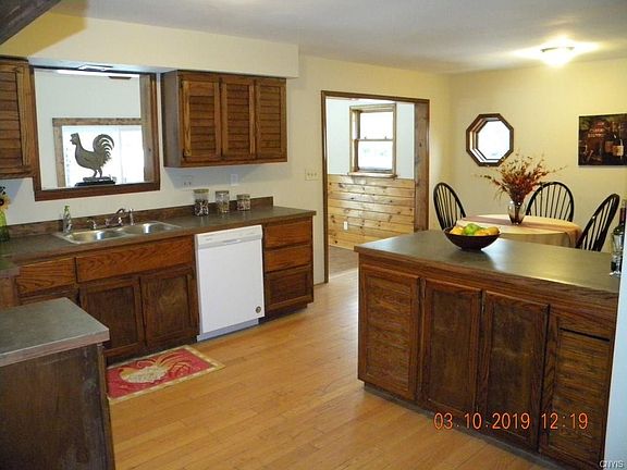 Features include new roof, windows, gas furnace, some floor covering, interior paint, countertop, overhead garage door, hot water heater and dishwasher. 2 two car detached garages, one has a workshop.