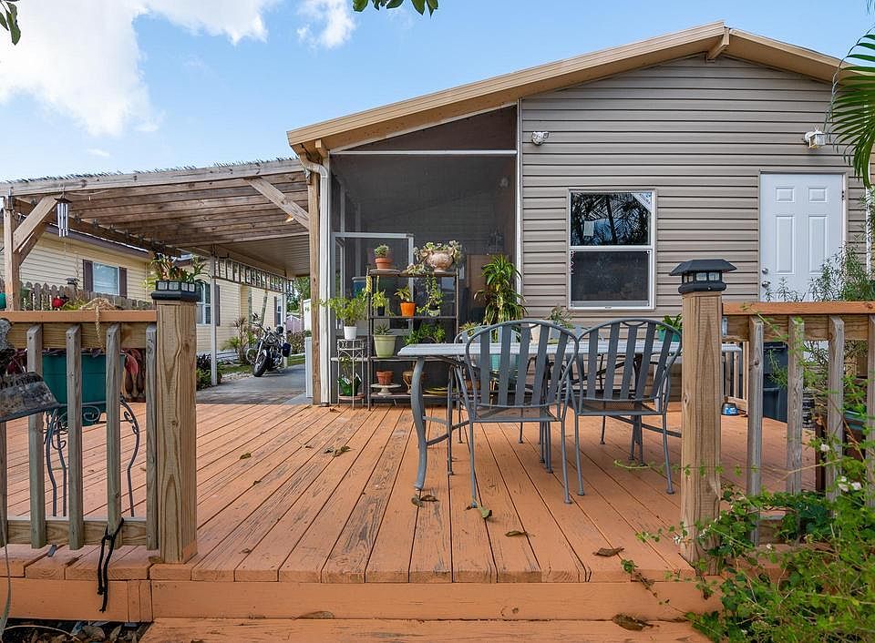 Beautiful 4BR/2BA home located in the all age family-friendly community of Palm Beach Plantation. Home provides great income earning opportunity - with an additional 1 bed/1bath efficiency included in the back of the home. Both bathrooms were recently updated/remodeled in 2022. Lakefront home with beautiful deck. Open patio in backyard provides great space for entertaining. Covered 2-car carport w/large storage shed. Community offers clubhouse, basketball, playground, pool, and A-rated schools. Close to shopping mall, restaurants & ocean beaches. Monthly fee includes lot rent, lawn care, cable, real estate taxes and trash. All appliances convey except refrigerator. All offers accepted! Must see in person!!!