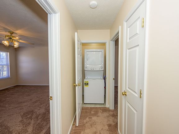 Townhome now available in Rineyville. Main Floor: Living room with ceiling fan, kitchen, dining room, half bathroom Second Floor: Two bedrooms, one full bathroom, washer/dryer hook-up Note: Washer/ Dryer Hook Up's. The laundry closet is set up for a stackable unit. (Photos similar to unit). Month to Month Lease.