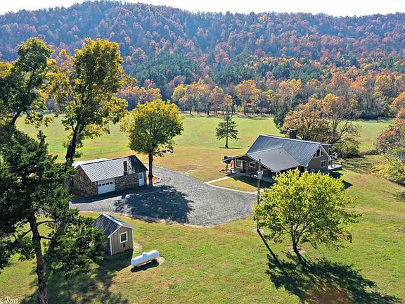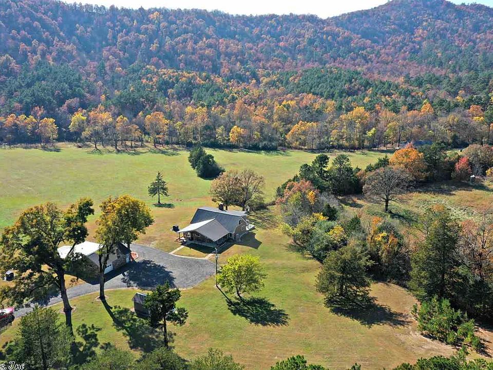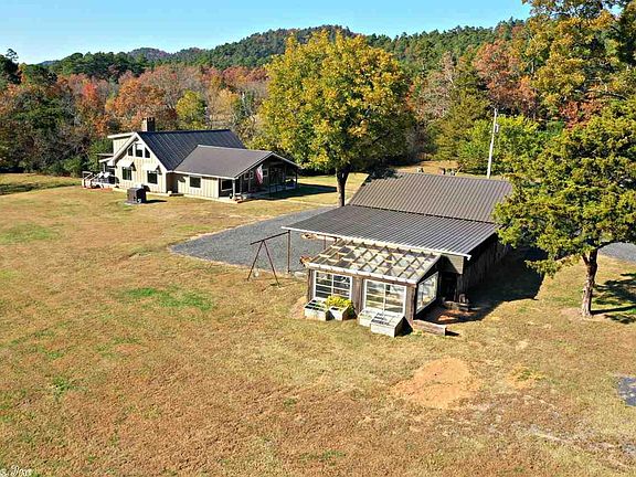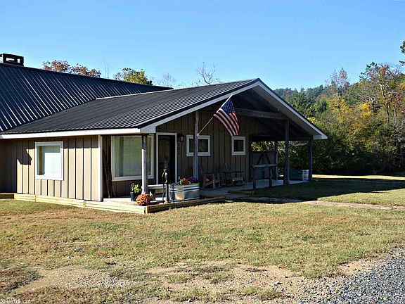 Cossatot River on property & National Forest Boundary. Shady Mt. Open Kitchen and dining room with all, high end appliances conveying. Living room with stone fireplace w/hearth & rustic wood mantle. Master suite downstairs with sitting area and private bath. Half bath off living room for guests. Living room and Master suite have doors leading out to large, steel framed deck to enjoy the mountain views. Sale includes most household furnishings and patio furniture with the exception of a few personal items