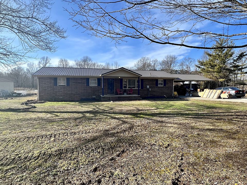 Wonderful opportunity to own your own mini farm, this brick home with hardwood floors and wide open living/kitchen/dining area features 3 bedrooms, 2 baths, separate den with wood burning fireplace, massive 4-6 car carport, 30x30 building with 200 sq ft of finished space, creek runs through the middle of property and a large pond, this homestead mini farm features chicken coop, 12 peach trees, 5 apple trees, 3 plum trees, 1 fig tree, 3 pear trees, 1 persimmon tree, 10K+ strawberry plants, 300 asparagus plants and the home is connected to public water but there are 2 wells on the property, creek is over the wooden bridge near pond
