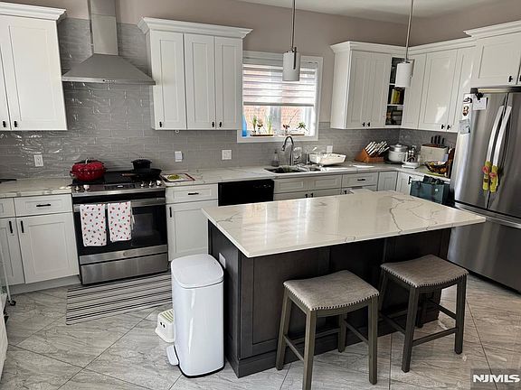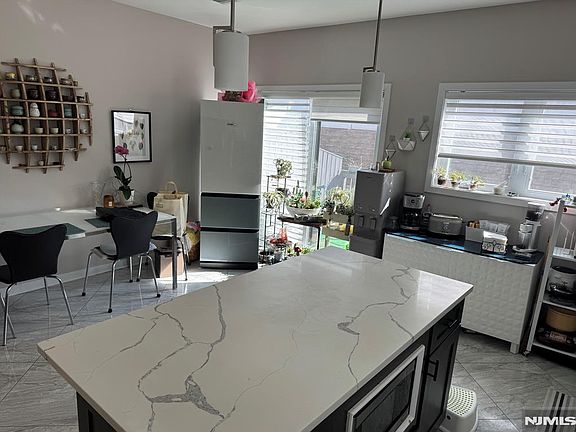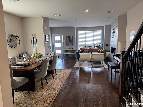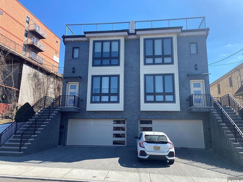 Panoramic view of the Meadowlands from roof deck Young modern townhome approximately 3,200 square feet. Steps from NYC transportation, parks and schools. This duplex features a 9 ft high ceiling, and a modern kitchen with top of the line stainless steel appliances, center island, quartz countertop, and a balcony leading out from the dining area. The second floor boasts two ample sized bedrooms with a full bathroom, and a master bedroom & bath with a soaking tub, an oversized glass shower, and a double vanity. There's central air, and oak hardwood floors. The third floor has even more space and an entrance to the roof deck. Ground level is complete with a garage, den/office and recreation room, and a full bath. Truly a must see!