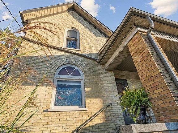 This beautifully maintained 2000 sq. ft. double-brick home, built circa 1900's, blends historic character with modern updates. Features include hardwood floors, crown mouldings, high ceilings, stained-glass windows, and the original staircase railings. The spacious kitchen offers new appliances and a walkout to the wrap-around deck. With 3 bedrooms and 1.5 bathrooms, a versatile loft with skylights, a gas fireplace, and approximately 500 sq. ft. of basement storage, this home is both functional and charming. 200 amp electrical service, plumbing, and roof shingles (approx. 6 years old) have all been updated. Enjoy a private backyard backing onto a wooded area and sunset views from the elevated front patio. Walking distance to downtown Hespeler, schools, parks, and trails, and only five minutes to Hwy 401.