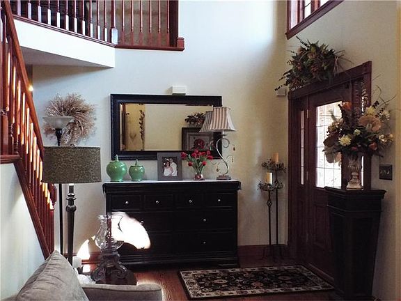 IMPRESSIVE 4-bedroom home in Center Township's Woodhaven Estates. This home boasts elegant everyday living with gorgeous detailing and custom features throughout. Welcome guests in a spectacular two story entry, lovely formal living room and dining room, beautiful hardwood floors, gourmet kitchen open to a breakfast room and sunken family room with a fireplace, full wet bar. Main floor has a laundry room and powder room. Upper level has a large private master bedroom with an Italian design tray ceiling, amazing master bath with a two-story ceiling with skylight. Also, there are 3 additional bedrooms and a full bathroom. Lower level has a beautiful game room with wet bar, pool table, office, bathroom and custom cedar dry sauna. Beautiful, large yard with an all stone patio with halogen lighting, custom designed landscaping, accent lighting, and watering system. Property lined with trees. Spacious three-car garage/storage. Must see inside "wows" and outside perks in this fabulous home!