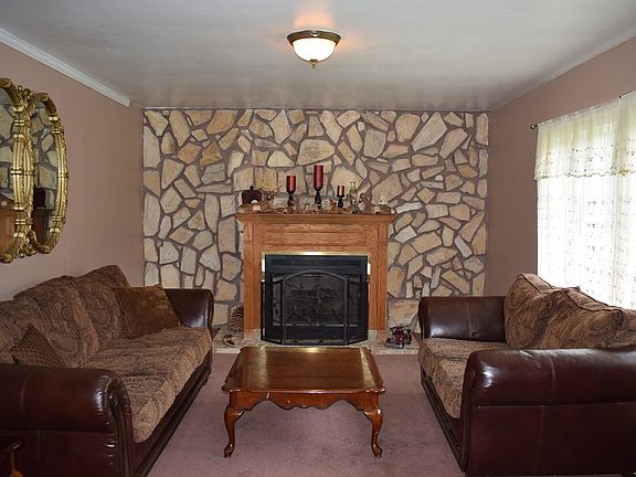 Nice brick ranch featuring living room, dining/family room with vaulted wooden ceiling and hardwood flooring, kitchen with island stainless steel appliances, 3 bedrooms, 2 full baths. Full basement with rec. room with fireplace and additional large space with laundry area. Outdoor features include in-ground pool with slide & diving board, rear patio, large fenced yard, garden space, 2 car carport, storage building and more!! Call for your appointment today!!