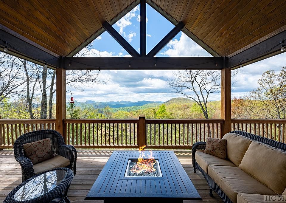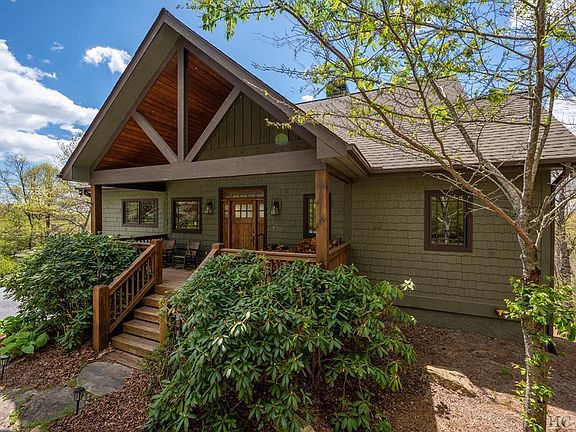 Perched at 4,300 ft. elevation, this meticulously maintained home is the epitome of mountain living with breathtaking views of Chimneytop and Whiteside Mountains! Triad Builders delivered excellent craftsmanship, meticulous construction, and high-end finishes like wainscoting, built-in cabinetry, and cedar shake siding to name a few. The main level's expert layout hosts the great room, kitchen, dining room, and primary suite. A floor-to-ceiling wood-burning fireplace centers the great room with beautiful stonework and a gas starter. Outside on the main level deck, the awe-inspiring views are on full display. Downstairs features a second living area with a gas log fireplace, two bedrooms with en-suite bathrooms, the laundry room, and an additional versatile room that can be used as an office, den, craft room or use your imagination! A gentle side yard can be accessed from the lower-level deck, perfect for your pets. This home is being offered furnished, with a few exceptions, and includes a recently encapsulated crawl space. Friends and family will love sitting around the firepit at Falcon Ridge's community pavilion and exploring the wonders of Panthertown Valley. With over 6,300 acres of wilderness, Panthertown Valley calls outdoor enthusiasts of all kinds, hikers, bikers, and anglers alike. Ownership comes with access to Sapphire Valley Masters Association's extensive amenities, golf, tennis, indoor and outdoor swimming pools, fitness center, carpet golf, Lake Fairfield, a community center, and seasonal activities like zip lining and snow skiing. This home can be used as a vacation rental with access to SVMA's amenities.