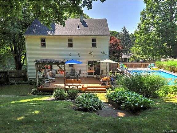 Welcome home to this beautiful 4 bedroom Colonial with updated kitchen, new roof and a "stay-cation" back yard with mature landscaping and deck and pool built for entertaining! Natural gas forced hot air heat, gas fireplace insert and granite counter tops with peninsula seating and open floor plan flowing into the dining room are just some of what this home has to offer.
