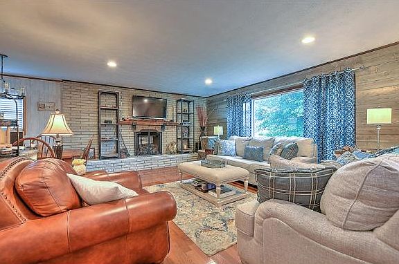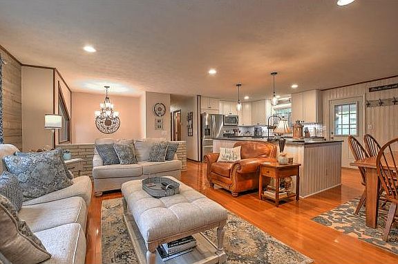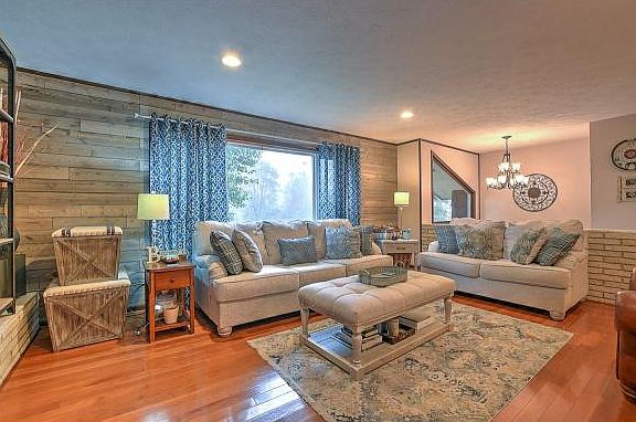 One of a kind find! This home offers a inviting floor plan with easy entry on both levels. This inviting open floor plan has much to offer with a completely remolded kitchen, subway tile backslash, under cabinet lighting, New heartwood self closing white cabinets, Granite (textured) counter tops, bar area, Ship-lap walls and panels in kitchen and living room- has a large brick fireplace w/ poplar wood mantel, gas fireplace with forced blower to keep heat from harming your t.v. and electronics. Home is offering fresh painting in multiple rooms, Large master suite that lead out on a private deck. Down stairs you will find a large den, 1 bedroom with walk in closet, laundry room , 1 car attached garage. Outside you have a 26x28 large detached garage with a deck area which host the Hot Tub. The Master suite has an updated bathroom, tile shower, lots of room for a reading room or relaxing area. Other features: Hardwood flooring except 2 bedrooms, Newer Heatpump, New On Demand tankless water heater, Roof is 5 years old, Newer HOT Tub will stay,New front door, New garage Doors. Separate garage in on its own meter cost appx $60.00m includes Hot Tub and outside light, Water runs appx $32,00, Gas 20.00 Electric under $200 in winter. A in law suite can be accommodated very easy on the basement level all you need is a sink and stove.