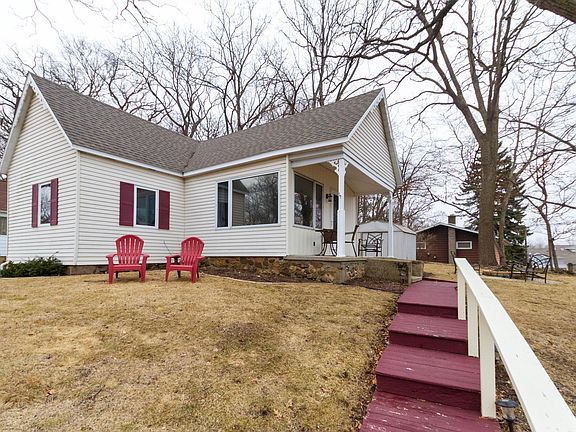 Location. location, location! Enjoy the stunning panoramic views from this three-bedroom home overlooking Lake Mary. The spacious open concept offers lake views from both the dining and living rooms. A large modern kitchen w/ new tile backsplash, stainless-steel appliances, & new flooring. Off the kitchen is a separate entrance and porch. Features include lake access through an easement to the lakefront. Take a short stroll to downtown for shopping, eating, or watching an Aquanut Show. Only a short drive to both Lake Geneva and Vail Resort's Wilmot Mountain. Recent improvements include a new roof, new flooring in the bath, and new landscaping. Don't wait on this one as it is a rare opportunity to enjoy lake life without the high lake front taxes. Great value.