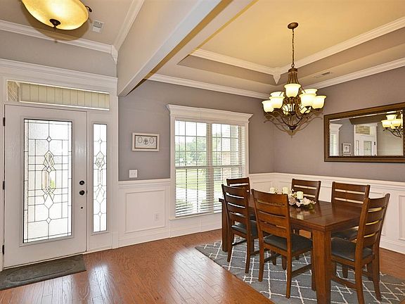 - DINING ROOM DESC: Wood Floor, Smooth Ceiling, Chair Rail, Crown Mold, 9? Ceiling, Trey