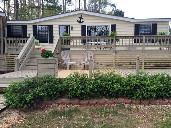 This is the most delightful, wonderful lake home! Screen porch, several outdoor decks and brick patio plus view of Lake Gaston! The large dock is a shared dock and a the upstairs sundeck flooring is in process of being redone! A great place to hang out and enjoy the view and Lake Gaston- This home has wonderful upgrades, large kitchen- separate dining and living rooms and laundry area with stack W/D. The renovation is fabulous and the new detached shed for all your toys/tools is great! Lots of extra's here - Don't miss it!House is completely furnished less the DNC list! Ready to move in and ENJOY!