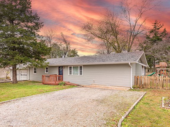 Come see this charming home in Hollister only 3 minutes away from the Branson Landing and Hollister R-5 Schools. This 3 bedroom, 2 bath home also boasts a bonus large family room with built in storage. The 2 car garage is lined with built-in shelves and cabinets. Enjoy the outdoors in a spacious screened in patio and fully fenced backyard on one of the flattest lots in the Ozarks. Garden area with raised beds is ready for planting and use the large shed to store all your supplies. Located on a quiet dead end street. New roof, gutters and gutter guards in 2022 and up-to-date HVAC system. Built in 1977, this 1500 square foot home sits on a 0.2 acre lot.