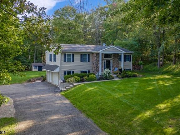 A SUPERBLY-MAINTAINED CUSTOM-BUILT 4BR and 2-1 2 BATH STONE-FRONT BI-LEVEL ON AN EXCEPTIONALLY PRETTY 1.10 ACRE LOT WITH A BEAUTIFUL PRIVATE LEVEL BACKYARD, A GORGEOUS FREE-FORM STAMPED CONCRETE PATIO WITH A FIREPIT, and A GREAT LOCATION LESS THAN TEN MINUTES FROM RT 78. THIS LOVELY WARM-AND-INVITING HOME FEATURES A TOTALLY RENOVATED CENTER ISLE GRANITE KITCHEN WITH EXTENSIVE MAPLE CABINETRY, UPGRADED STAINLESS STEEL APPLIANCES, A THREE-SEATER BKFST BAR, and AN ATTRACTIVE BEAD-BOARD BACKSPLASH. OTHER HIGHLIGHTS INCLUDE A HUGE FAM RM WITH A FULL-WALL RAISED HEARTH BRICK FIREPLACE, and A GRANITE WET BAR WITH WINE FRIDGE. THE HOME ALSO OFFERS A BRIGHT and AIRY OPEN FLOOR PLAN, GLEAMING HARDWOOD ON THE FIRST FLOOR, A CATHEDRAL CEILING MBR SUITE, UPDATED BATHS, CUSTOM DETAILED INTERIOR MOLDINGS, AND SO MUCH MORE!