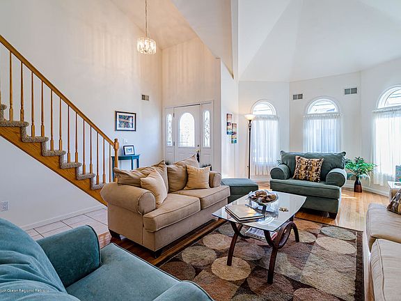 Immaculate 4 bedroom 2.5 bath Waterfront home. Walk into the bright, welcoming living room with vaulted ceiling. The first floor has an eat in kitchen with pantry, dining room and den that overlook the backyard. There is a gas fireplace in the den for cozy fall/winter nights. There's a 1/2 bath and a first floor bedroom too. The 2 car garage has direct entry to the home. Walk upstairs and you will find 2 bright bedrooms, a full bath and a master suite. The master has a full bath with whirlpool tub, a walk in closet and a balcony overlooking the water. The back has a large deck for entertaining. A short boat ride to the open bay. Large paver driveway with plenty of parking. Move in ready!