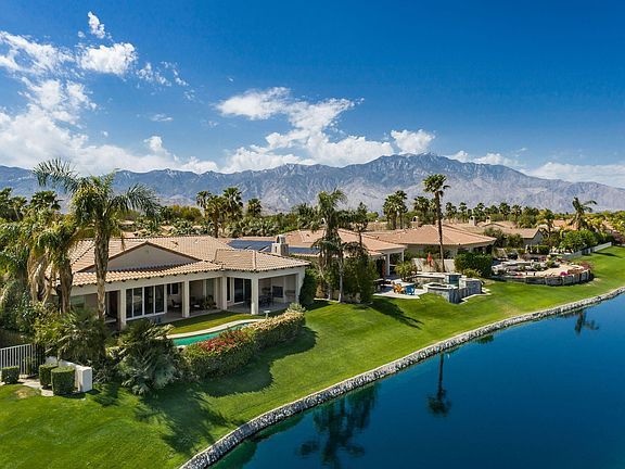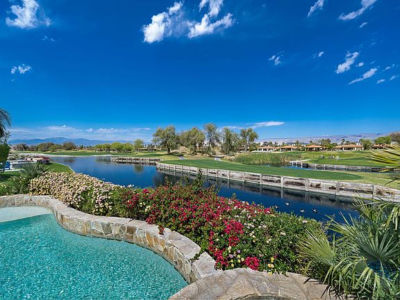 Lakeside Home on Premium 1/3 acre Lot with upgraded finishes and stunning Lake, Fairway and Mountain Views. Enter through a gated cobblestone courtyard to Double Glass Front Doors and an Entry Hall leading to Open Great Room complete with travertine flooring, fireplace, wetbar and walls of windows. Gourmet Social Kitchen with island, granite countertops, stainless appliances is open to the Great Room and Dining with Views. Master Suite with stone filled bath and walk-in closet with built-ins. 2 Guest Bedrooms in the house and a guest casita with access to the courtyard each have ensuite bath and provide great space for family and friends or an optional office/den/gym. An Outdoor Living Room with fireplace overlooks the lake and multiple fairways and #12 Green of the Pete Dye Private Course and the desert mountains. Several other covered spaces, a splendid terrace with pool and spa and Built-in BBQ island make this a great property for outdoor living. This desert paradise is located on coveted Royal Saint Georges Way in Legacy where a social and fitness membership to Mission Hills Country Club is included. Come home to your Desert Oasis!