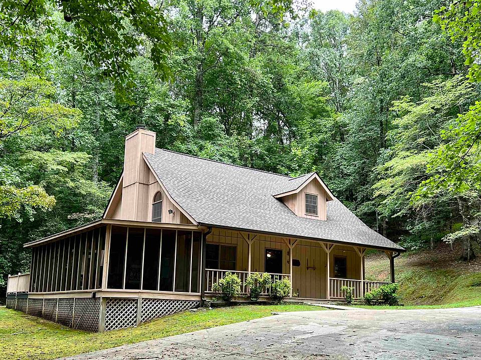 Peace and tranquility is what this Cabin on the Creek has to offer. It is currently used as a short term rental and is named "Little Bit of Heaven" but it would also make a perfect creekside forever home. This 3 bedroom, 3 bath, 2170 SqFt cabin is situated on 1.2 acres of complete privacy. You are greeted by the covered rocking chair front porch before entering into the open great room with high vaulted ceilings, a rock fireplace for those cold North Georgia nights and dazzling natural light from the thoughtfully placed windows and doors. The naturally flowing floor plan opens to the dining and kitchen area, that will make holiday entertaining easy. The kitchen is equipped with tons wood cabinetry and stainless steel appliances. A full bathroom is conveniently located off the kitchen/dining area for your guests. The roomy master bedroom has a private entrance/exit to the back deck and a full bath conveniently located only a few steps away. A second bedroom is located on the main floor with an appointed closet and a designated laundry room. The staircase will lead you to the oversized loft bedroom and full size bathroom, that is a great sleeping space for you kiddos and family to relax. Your favorite place will easily become the screened in back porch overlooking the beautiful noisy creek or the adrondack chairs situated on the creek bank. This property boasts 144ft of Town Creek frontage to enjoy trout fishing, or the perfect place for your kiddos to play in the water and make memories for years to come. This is truly a rare property with amazing income potential. It is being sold furnished.