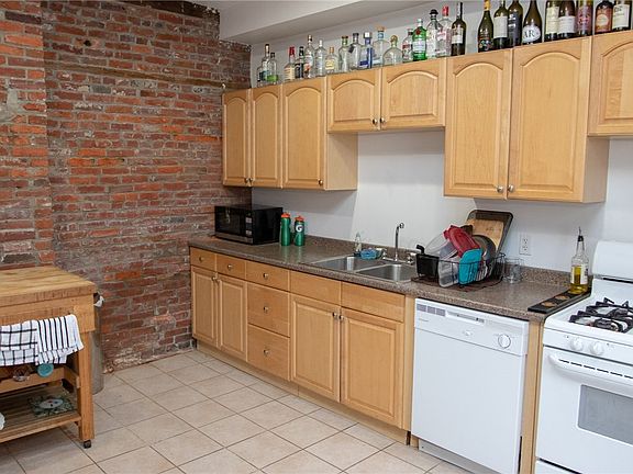 Very inviting home from the street to the third floor. Appearances may be deceiving but this is a deep house whose footprint lends to a variety of decorating styles and tastes. Kitchen offers room for a daily eating experience and the Great Room can be a sophisticated formal dining area when the occasion rises. Main sleeping floor has two oversized bedrooms, hidden laundry room, full bath and a wall for art, books or pictures. Lots of stunning exposed brick to showcase each room. Third floor bedroom is a pleasure all its own. Huge closet and spreading space galore. Permit on street parking.