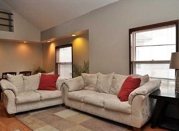 This bungalow home features an updated interior with open floor plan and high ceiling in living room. County listed at 1545 square feet with a focal point fireplace. Neutral decor with upstairs loft. This three bedroom home with basement is sure to please. Priced below county appraisal.