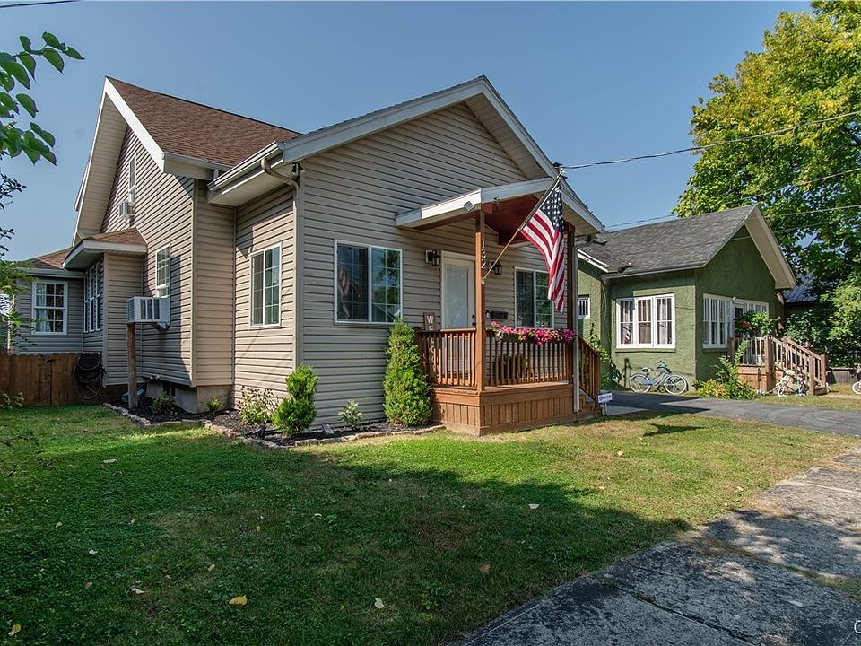 Remarkable 3 bedroom, 1.5 bath home in the City of Watertown. I love the enclosed front porch that expands your living space. The living room is super cute with a woodburning fireplace. Great dining room off the kitchen. The kitchen is a fantastic space with plenty of counterspace. There's a bonus room on the 1st. floor that can be a 4th bedroom or anything that works for you. 1/2 bath on the 1st. floor. 3 bedrooms all on the 2nd floor with a full bath. Wonderful backyard that is fenced. Detached 2 stall garage. Close to Thompson Park and many local amenities. Short drive to Ft. Drum