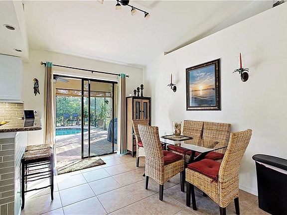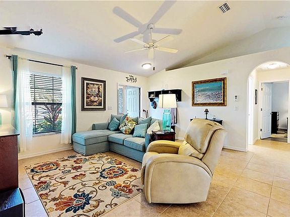 This 2016 POOL home features a Great room with split floor plan design & a beautiful SOUTHERN EXPOSURE SALTWATER POOL! Featuring 3 Bedrooms, 2 Baths & 2 Car Garage, Vaulted ceilings, plant shelves & tile floors in main areas. The Kitchen boasts white wood cabinetry, granite counter tops, full stainless steel appliance package, counter breakfast bar & large hall pantry. Under cabinet lighting accents the Glass Tile backsplash. The spacious Master Suite features a tray ceiling, walk in closet & an adjoining master bath with wood cabinetry, granite counters, dual sinks and a LARGE decorative tiled walk in shower! The Guest Bath also features granite counters, wood cabinetry and a tiled tub/shower combo. This home includes an indoor laundry room with a deep utility sink & cabinets! Sliding glass doors open onto the 20x9 under truss lanai opening unto the Mansard Caged Saltwater Pool. The Lanai & pool deck with side patio area are enhanced with stone pavers. Tropical landscaping, fenced yard w/2 side gates, a whole house water filter/reverse osmosis, storage shed, hurricane shutters & irrigation system are just a few extras to boast about. ALL ASSEMENTS PAID & NO FLOOD INSURANCE!