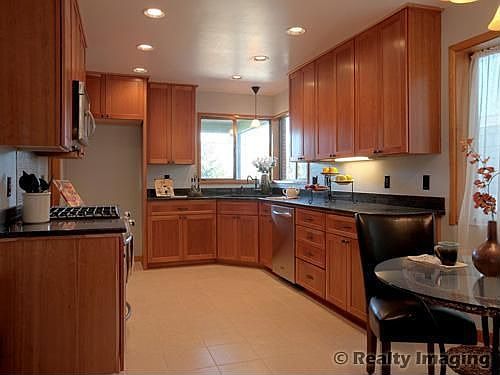 This spacious and generous Mid-Century Modern is full of amazing wonders! From the view of Mt. Hood to the character enriched original bathroom tiles, there are many comfortable and pleasing amenities to offer. Luminous hardwood floors throughout the main living area and vast windows showcase plenty of daylight. Updated kitchen with striking granite counter tops, gleaming new cabinetry, and stainless steel appliances are surrounded by a gorgeous tile floor. With its own private terrace, nicely sized sitting area and walk-in closet, the master suite is truly eye-catching--master bath boasts stunning slate tile soaking tub and shower, tile floor and double vanity. A perfect place to entertain, the lower level family room has built-in cabinets and refrigerator, fireplace and immediate access to backyard for outdoor activities. With no expense spared, this home has been restored to its top condition in an ideal neighborhood, North Tabor.