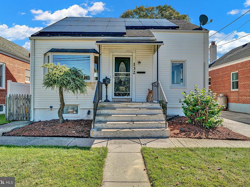Welcome to this well appointed cape cod featuring 3 bedrooms and 2 full baths. Upon entering you will be greeted with a freshly painted house with neutral tones. The dining room boasts a large bow window and is conveniently located next to the spacious kitchen with vaulted ceilings and easy access to the back yard. The living room is bright and offers flexibility for entertaining. There is a main floor bedroom/office featuring built in shelving. An updated full bath completes the main level. Laminate flooring on both levels. Upstairs greets you with two large bedrooms featuring ample storage and a large full bathroom. The basement is also freshly painted and has new Berber carpeting and is separated in two sections. The large laundry area hosts the utilities and walk out entry to the large back yard and spacious shed. Solar panels makes this house an affordable option. An $80 monthly electric bill for the next 24 years is a nice perk. Centrally located near shopping, schools and parks. Easy access to I-295 to NJ Transit to NYC and Philly commuters.