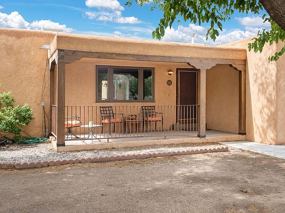 Welcome to this luxurious North Valley retreat, nestled under the canopy of mature trees. This timeless pueblo-style home has been fully remodeled with uncompromising attention to detail. Step inside to discover gleaming hardwood floors, a stunning updated kitchen featuring premium cabinetry and stainless appliances, and a beautifully renovated bathroom with refined finishes. High-end windows flood the space with natural light, while the exterior showcases beautiful stucco work. The detached garage offers additional workshop space, perfect for creative pursuits or extra storage. Situated on an expansive lot, this home blends elegance, comfort, and craftsmanship at every turn.