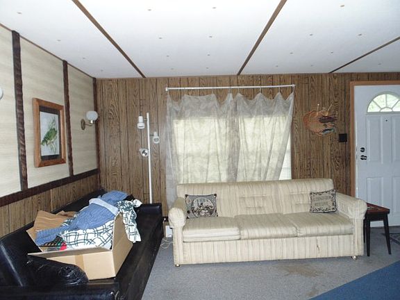 Sand Lake waterfront, single wide mobile home move in ready. Large Screened back porch overlooking small lake and wooded yard, just over half an acre. Great starter home or weekend get away. Split bedrooms, fridge just replaced in July.