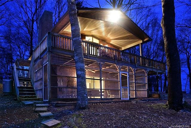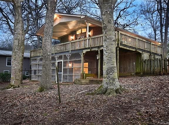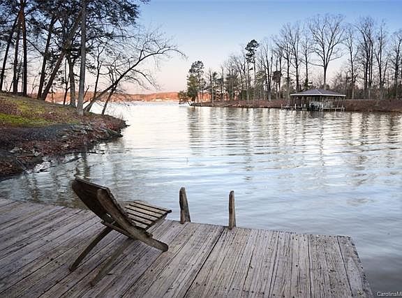 Deep, deep, deep water! Waterfront home with open floor plan! Great room has cathedral ceilings, lots of glass, masonry fireplace and open kitchen. 3 bedrooms plus a bonus and 2 full baths. Finished basement with nice, open family room and 2nd fireplace. Outdoor entertaining abounds with fantastic decking, covered porch and concrete patio, all overlooking the lake. Boathouse and pretty view of cove and some of the main channel.