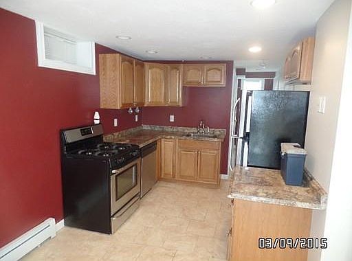 Bright and cheery, updated one bedroom apartment available for immediate occupancy. Oak kitchen cabinets with lots of counter space. Unit includes stainless steel appliances with stove, refrigerator and dishwasher included. Coin operated washer and dryer on site. Bathroom is modern with fiberglass shower stall and ceramic tile flooring. Gleaming laminate flooring in living room and bedroom. High efficiency boiler with forced hot water heat. First, last and security required.