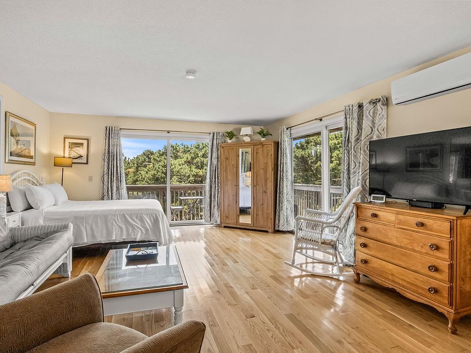 Welcome to The Braemar in beautiful North Truro, where coastal charm meets modern convenience. This exquisite seasonal 450 sqft corner unit has a wraparound deck and receives tons of natural light, offering views of the surrounding lush landscapes. The kitchen boasts sleek granite countertops, clean white appliances and delightful cabinetry. The cozy living area invites you to relax and unwind, creating the perfect spot to enjoy the gentle sea breeze and wonderful sunsets. The bathroom is adorned with contemporary fixtures offering a rejuvenating experience after a day spent exploring the nearby sandy beaches or indulging in the local coastal cuisine. The Braemar is more than just a residence; it is a lifestyle. As a resident, you'll have access to the sparkling community pool, sundeck, and outdoor grilling areas. The complex also offers convenient parking and a friendly on-site management team, ensuring every aspect of your stay is taken care of. Located in the heart of North Truro, you'll find yourself moments away from the area's most beloved attractions. Explore the nearby Cape Cod National Seashore, bike along the scenic trails, or take a short drive to the vibrant Provincetown, where art, culture, and entertainment come alive. Whether you're seeking a vacation retreat or a fantastic investment opportunity, this studio condo is a rare find. Washers and dryers are available for owners' usage in the basement area. No pets allowed per association. CASH purchase only.