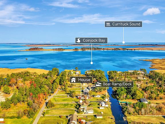 Enjoy living on water? This cute 3 bedroom, 2 bath brick ranch is located on a peaceful canal leading to the Intracoastal Waterway (ICW) and Currituck Sound. Situated on .75 acres, the home features a 1-car attached garage with a 30 amp outlet perfect for your RV or Boat, a detached 1-car garage/workshop, and a carport. A private concrete boat ramp, along with a new bulkhead and dock (2022), offers convenient water access for boating enthusiasts. Enjoy outdoor living with a screened-in porch overlooking the canal, and a fenced yard (new in 2021). Both bathrooms were newly renovated in 2024, showcasing some modern finishes. This property is the perfect blend of waterfront living and modern amenities, ideal for those seeking tranquility and adventure in one stunning location. Centrally located, easy commute to VA, Elizabeth City, or OBX.