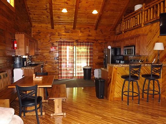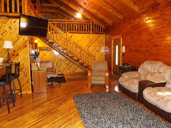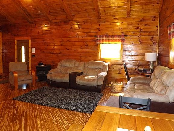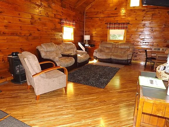 Spotless log home with a variety of woods used throughout - oak cabinets, bamboo floors, log stairs and railings. An open floor plan with vaulted ceiling, 2 bedrooms, marble bathroom, laundry closet, large loft, crawl space. Outdoors is a spacious covered porch off the kitchen, fire pit and BBQ grill, large yard and ample parking. If you like the look of wood, you really need to see this! Fully furnished and ready to enjoy.