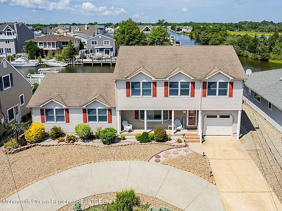 .Expansive Waterfront Custom Colonial, on unquestionably one of the nicest waterfront streets in Brick,. Plenty of room for large family, could even do a Mother/Daughter, 6 good sized bedrooms, 4 Full baths on 75 feet on Vinyl bulkhead, with private ''open water'' marsh views, and quick bay entry, has an open floor plan with Hardwood Floors, Large Eat-in Kitchen, Crown Molding, a Large Living Room, Dining Room, & a 4 Season Sunroom. There is a Master Suite on the 1st floor with a full bathroom & separate entrance & a Spacious Master suite on the 2nd floor with Vaulted ceilings, Walkin Closet, Jacuzzi tub, & Shower stall. The 2nd story also includes a bonus room with wet bar & another Bonus room with a gas fireplace. The Backyard has a large composite deck, newer hot tub, and outside shower. Sandy water only in crawl, low flood premium.