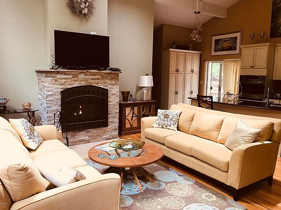 Gorgeous home with private setting on 1.56 acres with seasonal lake views. Great home for entertaining both inside and out with the open floor plan and the expansive front and back decks. This home features a stunning kitchen with quartz counters, hardwood floors, master en-suite with a spa-like bathroom, dressing area that anyone would fall in love with, sun room with beautiful views, fireplace, cathedral ceilings, full finished basement with outside entrance, and a 2 car garage. Enjoy the natural glacial lake, beach area, restaurant, tennis courts, basketball courts and ball fields.
