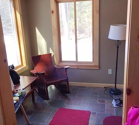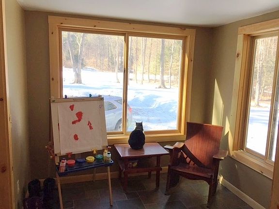 Ten minutes north of Brattleboro, set way back from the road, this beautifully remodeled, 4 bedroom, 3 full bath log cape has over 7 nicely-landscaped acres with frontage on the West River down below. There's 2,100 square feet of living space, new mudroom addition, updated kitchen and bathrooms and open-concept kitchen and dining area. There's also cathedral ceilings in the living room with local, exposed timbers, newly installed pellet stove insert, bonus upstairs living space, freshly painted rooms and exterior and new insulation. With a wonderful back deck off the living room slider and new storage shed, this property's rural setting is complemented by quick, convenient access to town.