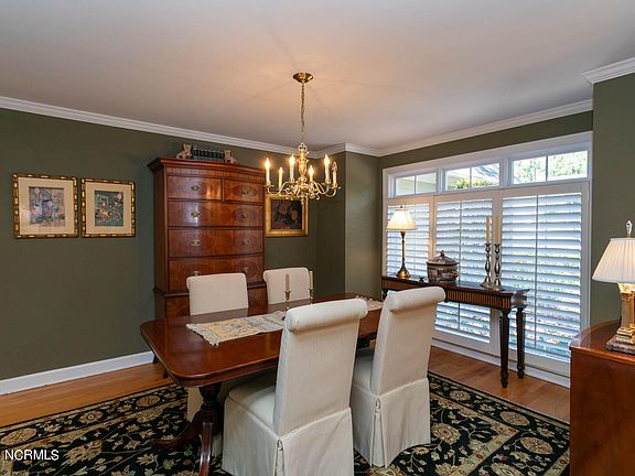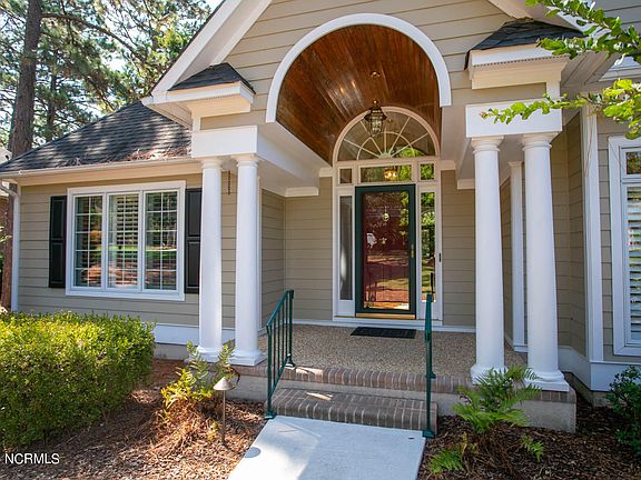 If you want the finest, it can be yours in this superbly crafted, impeccably maintained golf front home in Longleaf Country Club. Situated on a beautifully landscaped lot on the 17th fairway of the course, this wonderful home offers so many fine finishes and touches throughout! Hardwood flooring in the main living area, crown molding, plantation shutters, granite countertops in the kitchen, primary bath and laundry, just to name a few. A cathedral ceiling spans the living room with a lovely natural gas fireplace with marble base and surround, custom cabinetry and bookcases, and sliding glass doors with sidelights opening to a custom screened porch with a cathedral ceiling. A bright kitchen and breakfast nook has stainless steel appliances, island with gas cooktop and sliding glass doors to a large back deck. The main level primary suite has a spacious bedroom, his and hers walk-in closets and spectacular bath with garden jetted tub, double sink vanity, step-in shower and chair rail trim and beadboard wainscoting. The upper level has two bedrooms - one with a cathedral ceiling and the other with a walk-in closet - full bath, and large, bright bonus room accessed from a separate stairway off the laundry room. This home has great curb appeal!