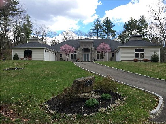 WOW! Custom designed and built 5148 sq.ft. contemporary elegant ranch smart home with 4 car attached garage built in 2006 on 5 private acres appraised at $725,000 by Assessor. This hidden treasure offers an open floor plan, gourmet kitchen with commercial oven/range opening to family room with gas fireplace, dramatic coffered and soaring ceilings from 10 to 25 high, archways and columns, bamboo and tile flooring, quality mechanicals and building materials. To name a few, there is Central vacuum throughout the home & garage, 4 zone HVAC system, as well as a music/intercom system with hookup for your i-pod, mp3 player or laptop. The master suite retreat offers large sitting room, separate exercise room, walk in closet, spa like bath, and more in over 1200 sq.ft. A separate wing houses 2 bedrooms, Jack & Jill bath, and separate laundry room. The 4th bedroom is currently being used as an office. The huge unfinished lower level offers great potential, currently used as practice area for teenagers. The backyard offers a great patio area off the family room. Secluded yet convenient to town center shops and restaurants and just 15 minutes to I-84, and 90 minutes to NY City. Additional land can be purchased. This home CANNOT be replaced even at this price. A fabulous home for a lucky family. VIDEO AVAILABLE!