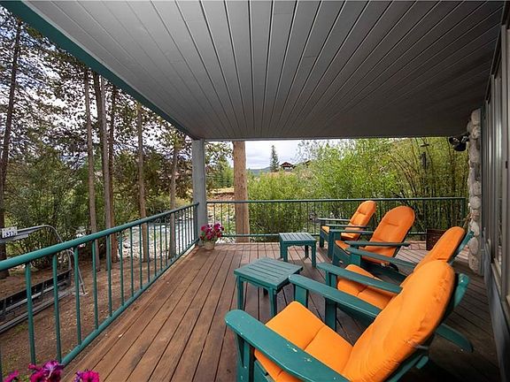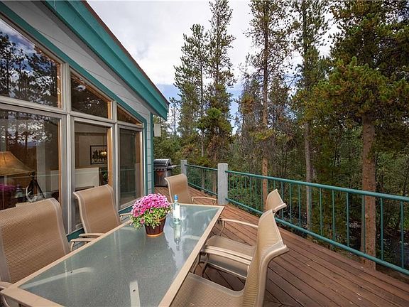 Looking for a riverfront property in Frisco? This 3-level home is perfectly situated at the fork of Tenmile Creek at the end of a cul-de-sac. Located within the coveted Stonebridge Townhomes complex. Relax on any of the 3 patios. Large open kitchen has newer stainless-steel appliances. Lower level living area with walk out deck to seating area with fire pit. Six bedrooms includes a 2-bedroom, 2-bath accessory lock-off. Next to the bike path and only a short walk to Main Street.