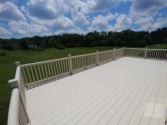 Oh wow!! Unbelievable 27' composite deck (no staining or painting needed) off master bedroom, overlooking green space & trees! The views are stunning. 11'X 11' four-seasons room and lower level 15' X 15' deck. Two-story great room w/fireplace. New stainless steel appliances. New carpeting & lights. Bathrooms have tiled flooring. Fresh paint throughout. Don't miss this stunning home with views & deck you won't find again!